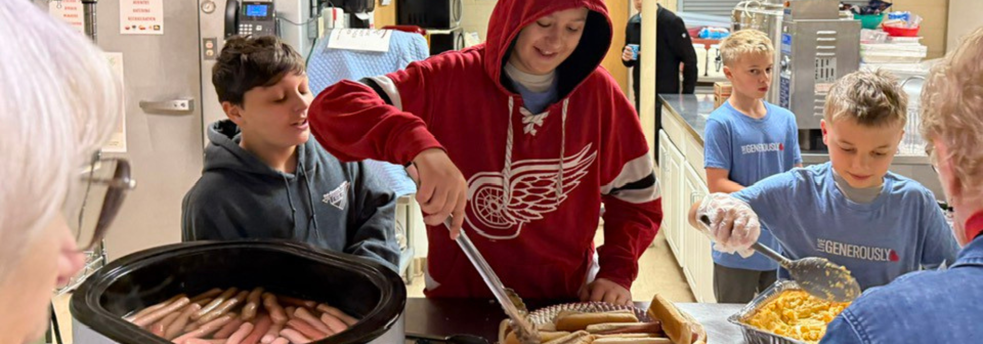 Confirmation kids serving food at Wednesday Night Dinner at First Lutheran Church in Muskegon MI